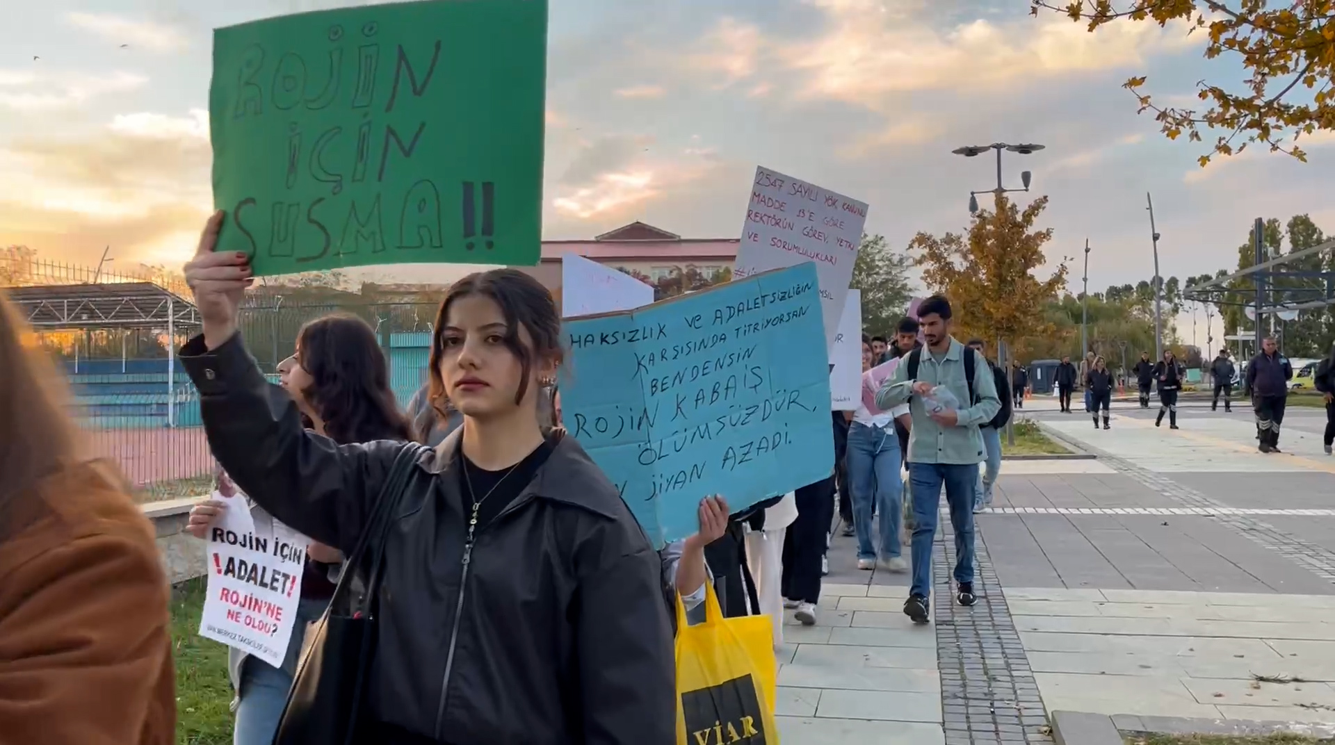 ”Rojin Kabaiş İsyanımızdır” ve Kampüs Uyuma Öğrencine Sahip Çık” sloganları eşliğinde yürüyen öğrenciler, failler açıklanıp yargılana kadar eylemlerini sürdüreceklerini belirtti.