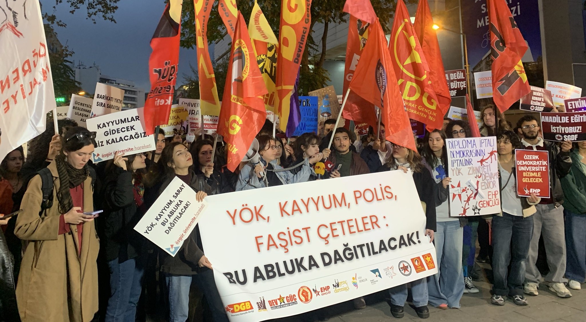 Ankara’daki gençlik örgütleri, Yükseköğretim Kurulu’nun (YÖK) kuruluş yıldönümünde Çankaya Belediyesi önünde basın açıklaması yaptı. “YÖK, kayyum, polis, faşist çeteler: Bu abluka dağıtılacak” pankartının açıldığı eylemde, “Kayyımlar gidecek biz kalacağız”, “Savaşa değil eğitime bütçe” ve “Anadilde eğitim istiyoruz” dövizleri taşındı.