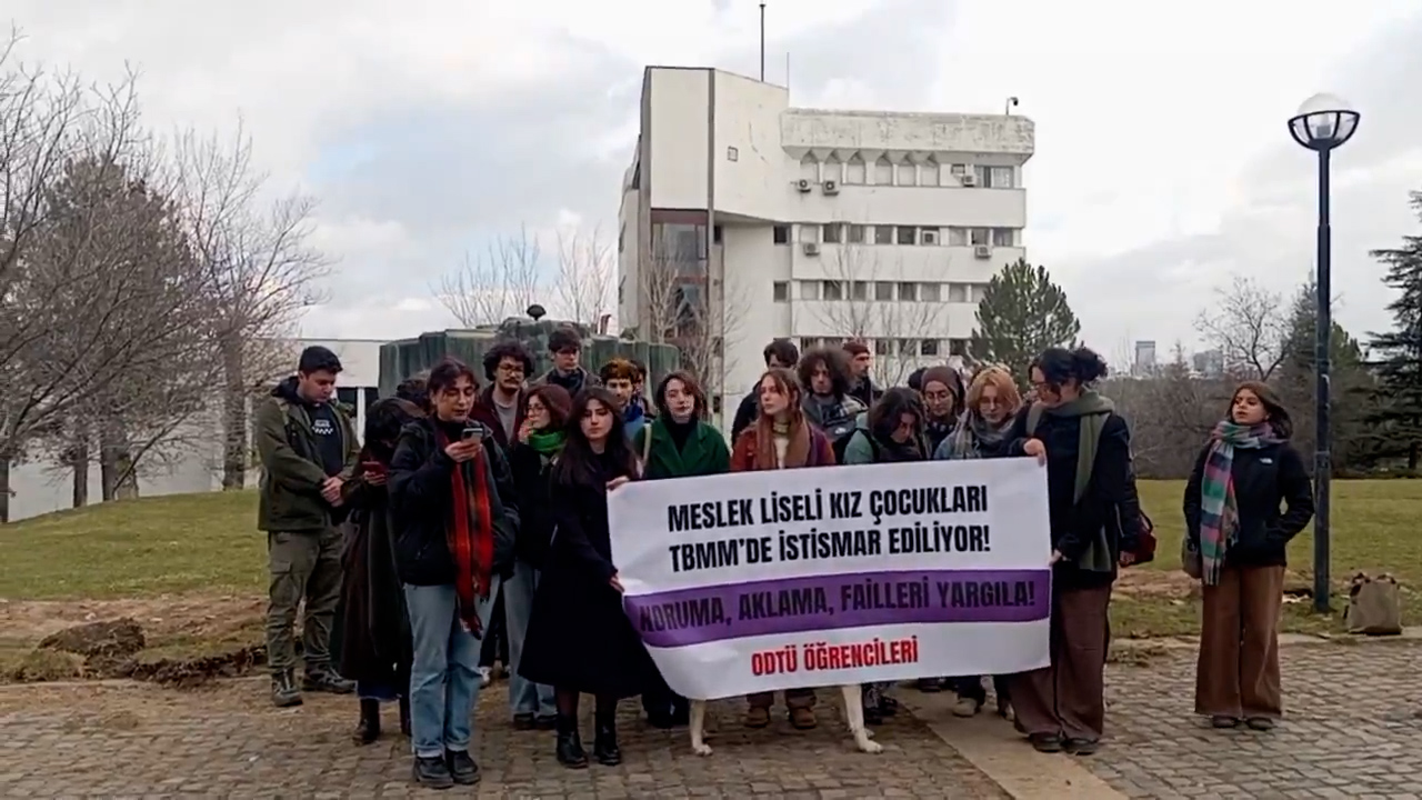 ODTÜ öğrencileri, meslek liseli kız çocuklarının TBMM’de staj yaptıkları sırada cinsel istismara uğramasına karşı basın açıklaması düzenledi. Açıklamada, tehdit edilen çocukların yaşadıklarının iktidarın çocuklara nasıl bir yaşam dayattığını açık biçimde ortaya koyduğu belirtilirken, yaşananların sistematik cezasızlık politikalarının bir sonucu olduğu vurgulandı.