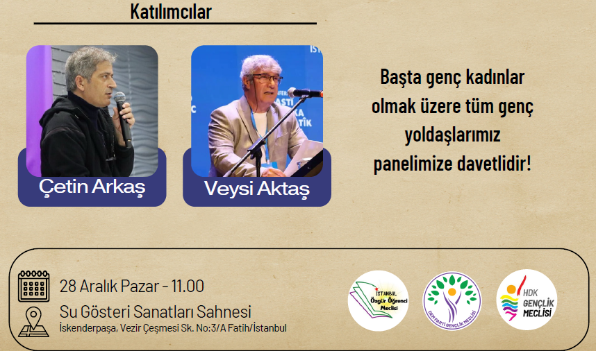 HABER MERKEZİ – Gençlik örgütleri, demokratik sosyalizmin inşasında gençliğin rolünü tartışmak üzere 28 Aralık Pazar günü İstanbul’da panel düzenliyor.