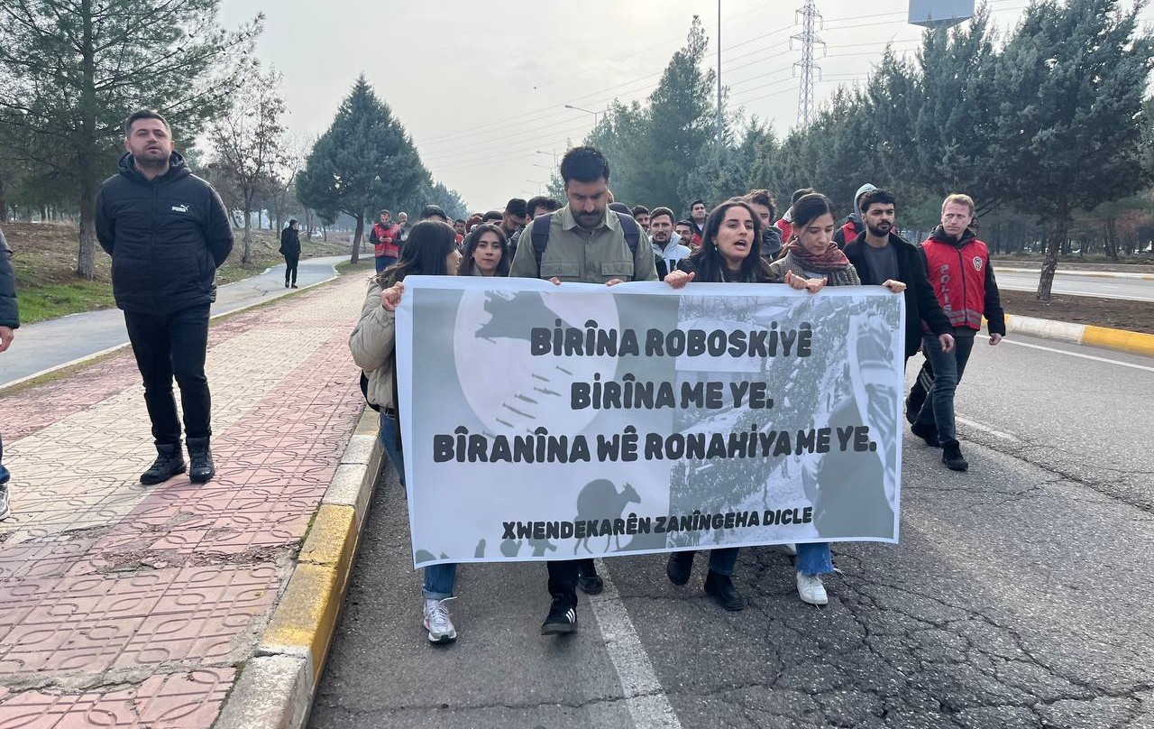Açıklama öncesi kampüs içerisinde “Birîna Roboskiyê birîna me ye, bîranîna wê ronahiya me ye” pankartı açarak yürüyüş gerçekleştirmek isteyen öğrencilere polis engel oldu. Tüm engellemelere karşı, “Üniversiteler bizimdir” diyen öğrenciler “Gençlik burada dimdik ayakta”, “Bijî berxwedana ciwanan” ve “Roboskî’yi unutma, unutturma” sloganlarıyla yürüyüşlerini gerçekleştirdi. Fen Fakültesi önünde son bulan yürüyüş sonrası açıklama yapıldı. Basın metninin Türkçesi Sidar Kiye, Kürtçesi ise Hozan Nas tarafından okundu.