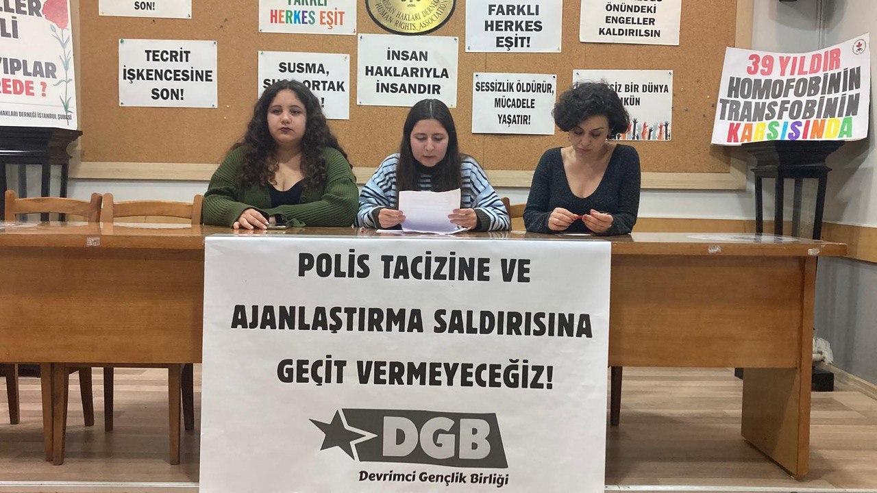 İstanbul’da Devrimci Gençlik Birliği (DGB) üyesi Ayşe Nur Semiz’in polis tarafından taciz edilmesi ve ajanlaştırılmaya çalışılmasına ilişkin basın açıklaması gerçekleştirildi. İnsan Hakları Derneği (İHD) İstanbul Şubesi’nde gerçekleştirilen açıklamaya çok sayıda kişi katıldı.