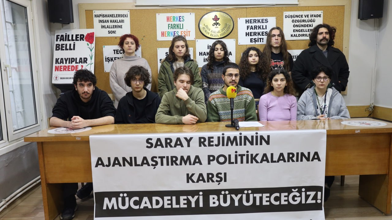 Özgür Üniversite Hareketi, öğrencilerin Kredi Yurtlar Kurumu (KYK) bursuna gelen zamma karşı 6 Ocak’ta yaptıkları eylemin ardından polisin gözaltına aldığı öğrencilere ajanlık dayatmasında bulunmasına ilişkin basın toplantısı düzenledi. İnsan Hakları Derneği (İHD) İstanbul Şubesi’nde düzenlenen toplantıda “Saray rejiminin ajanlaştırma politikalarına karşı mücadeleyi büyüteceğiz!” pankartı yer aldı.