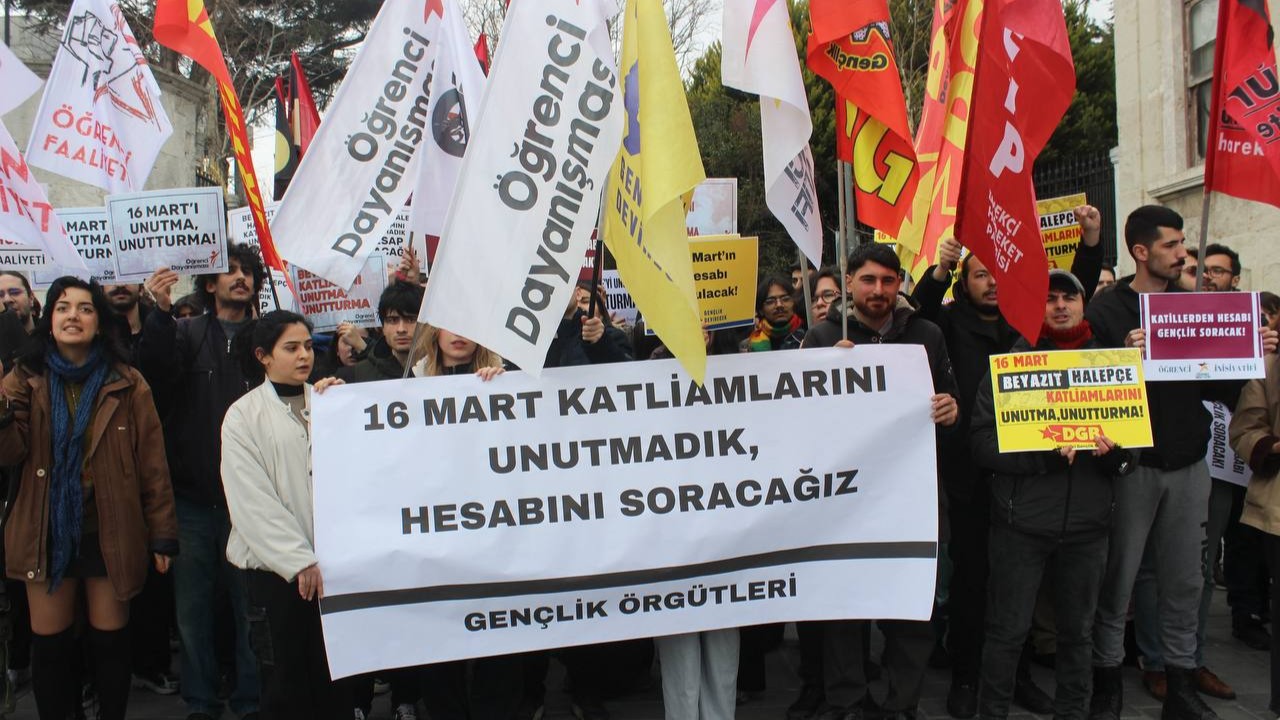 Gençlik örgütleri, 16 Mart 1978’de gerçekleşen Beyazıt Katliamı ve 16 Mart 1988’de gerçekleşen Halepçe Katliamı’nı protesto etmek için İstanbul Üniversitesi Eczacılık Fakültesi önünde açıklama yaptı. Çok sayında gencin katıldığı açıklamada sık sık “16 Mart’ı unutma unutturma“ sloganı atıldı. Açıklamada, “16 Mart katliamlarını unutmadık, hesabını soracağız” pankartı açıldı.