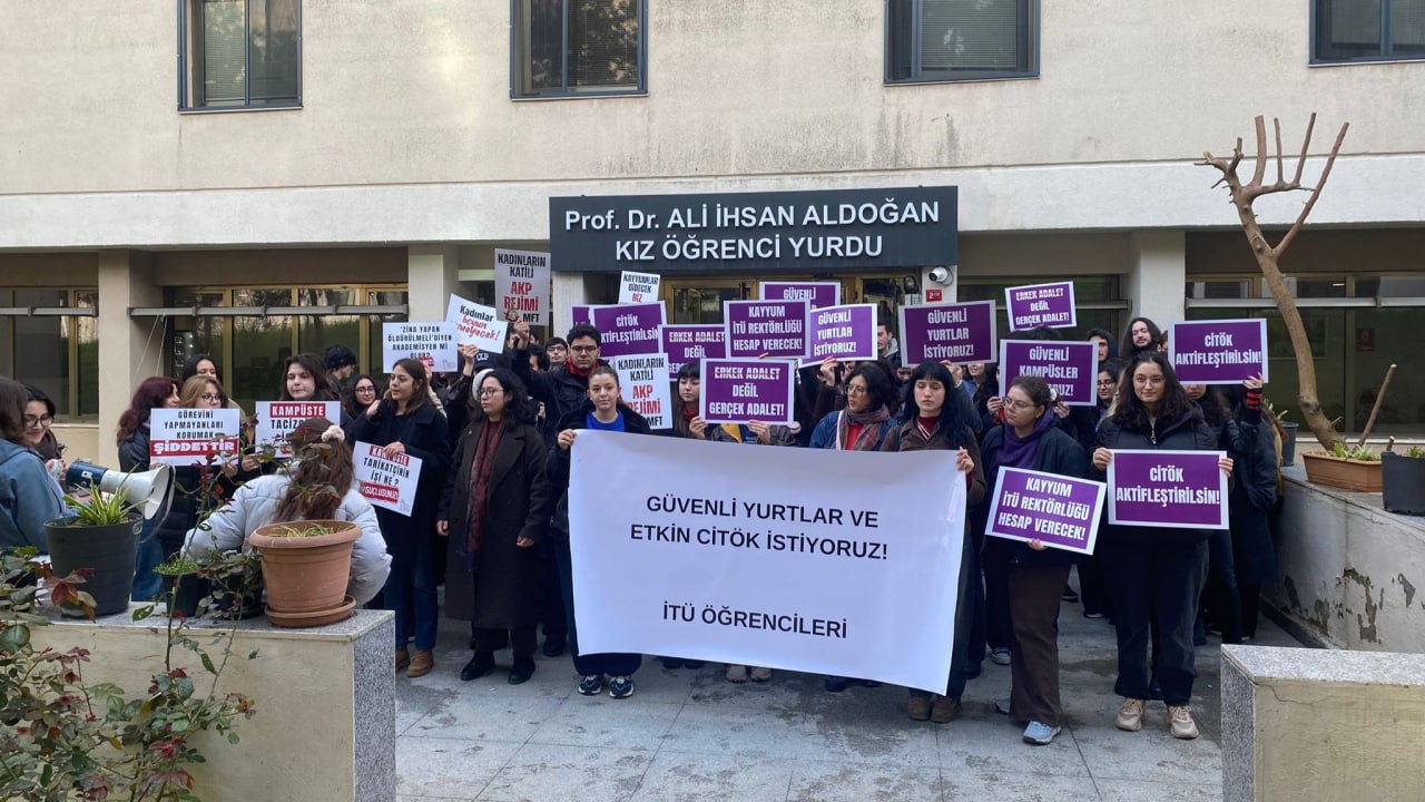 İstanbul Teknik Üniversitesi (İTÜ) Ali İhsan Aldoğan Kız Öğrenci Yurdu’nda iki gün önce bir erkeğin içeri girerek kadın öğrencileri taciz etmesi, kampüste kadın öğrenciler tarafından protesto edildi. Yurdun önünden rektörlük önüne kadar yürüyen öğrenciler, üniversite yönetiminin ve Gençlik ve Spor Bakanlığının “güvenlik” adı altında uyguladığı denetimlerin kadınları korumaya yetmediğini belirtti. Açıklamada, kadınların sadece sokaklarda değil, üniversite kampüsleri ve yurtlar gibi en temel yaşam alanlarında dahi güvende olmadığına dikkat çekildi.